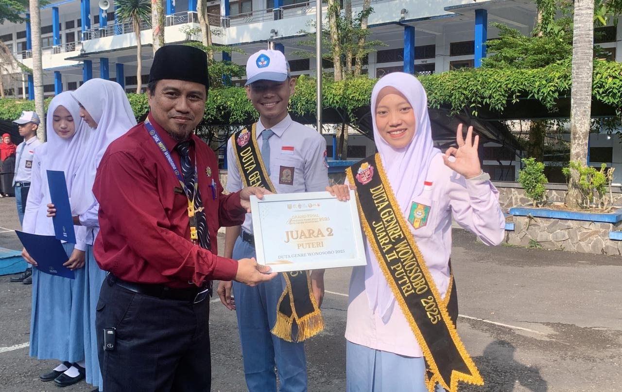 Valenta Huda Aswana (XII AKL ICP) yang meraih gelar Duta Genre Wonosobo 2025 dengan predikat The Best Edukasi Remaja.